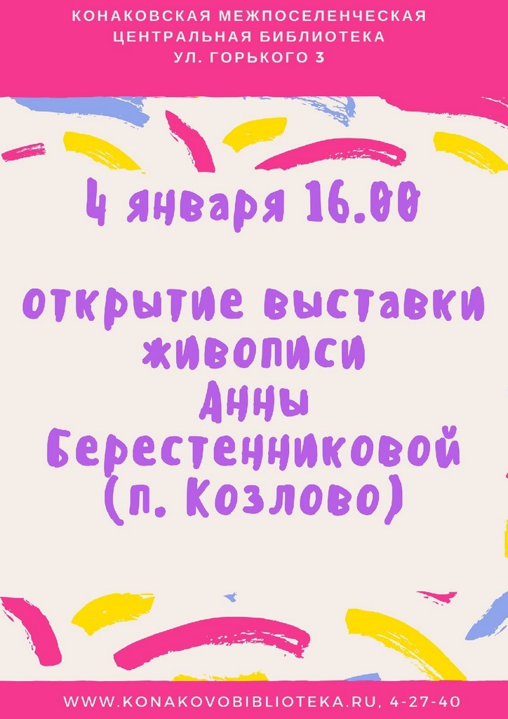 Открытие выставки творческих работ Берестовой А.А. из п.Козлово Конаковского района МЦБ