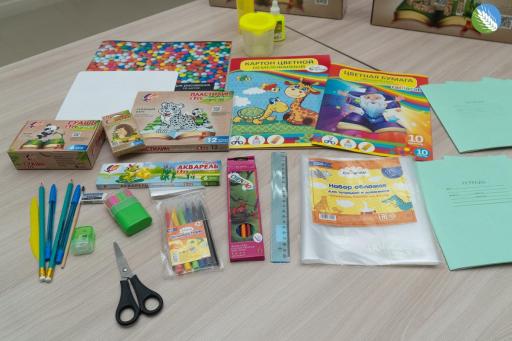 Подарочный набор включает все необходимые материалы и принадлежности для плодотворной учебы: ручки, карандаши, фломастеры, акварель и гуашь, кисти, восковые мелки, тетради в клетку и линейку, а также обложки для них, ножницы, точилки, ластики, линейки, пластилин, доски и стеки для лепки, клей, стакан-непроливайку, набор счетных палочек, блокнот для рисования, разноцветный картон для аппликаций, удобный пластиковый пенал – всего 45 предметов, которые пригодятся детям в учебе и творчестве. 53 первоклассника 1 сентября отправятся в увлекательное путешествие по Стране знаний с подарочными наборами от профсоюзной организации ПО «Дмитрогорское».