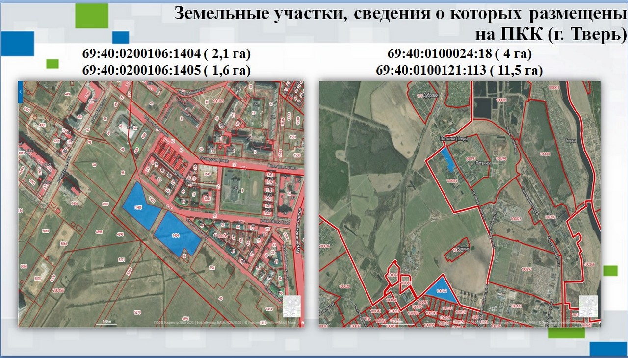 Руководитель Управления Росреестра по Тверской области Николай Фролов: «Ещё в 2020 году на предварительном этапе оперативным штабом выявлено 13 земельных участков общей площадью 367,7 га для использования под индивидуальное жилищное строительство и строительство многоквартирных домов. Один из них - в Конаково, площадью 5,7 тыс. кв. м, уже предоставлен в безвозмездное пользование для строительства многоквартирного жилого дома в рамках программы по переселению граждан из аварийного жилья. На данный момент на Публичной кадастровой карте Росреестра размещены сведения о восьми земельных участках площадью 21,74 га, расположенных в Твери и Конаково. Благодаря сервису «Земля для стройки» потенциальные инвесторы теперь могут свободно в режиме онлайн выбрать на этой карте и оценить пригодные для строительства жилья земли».