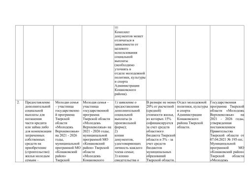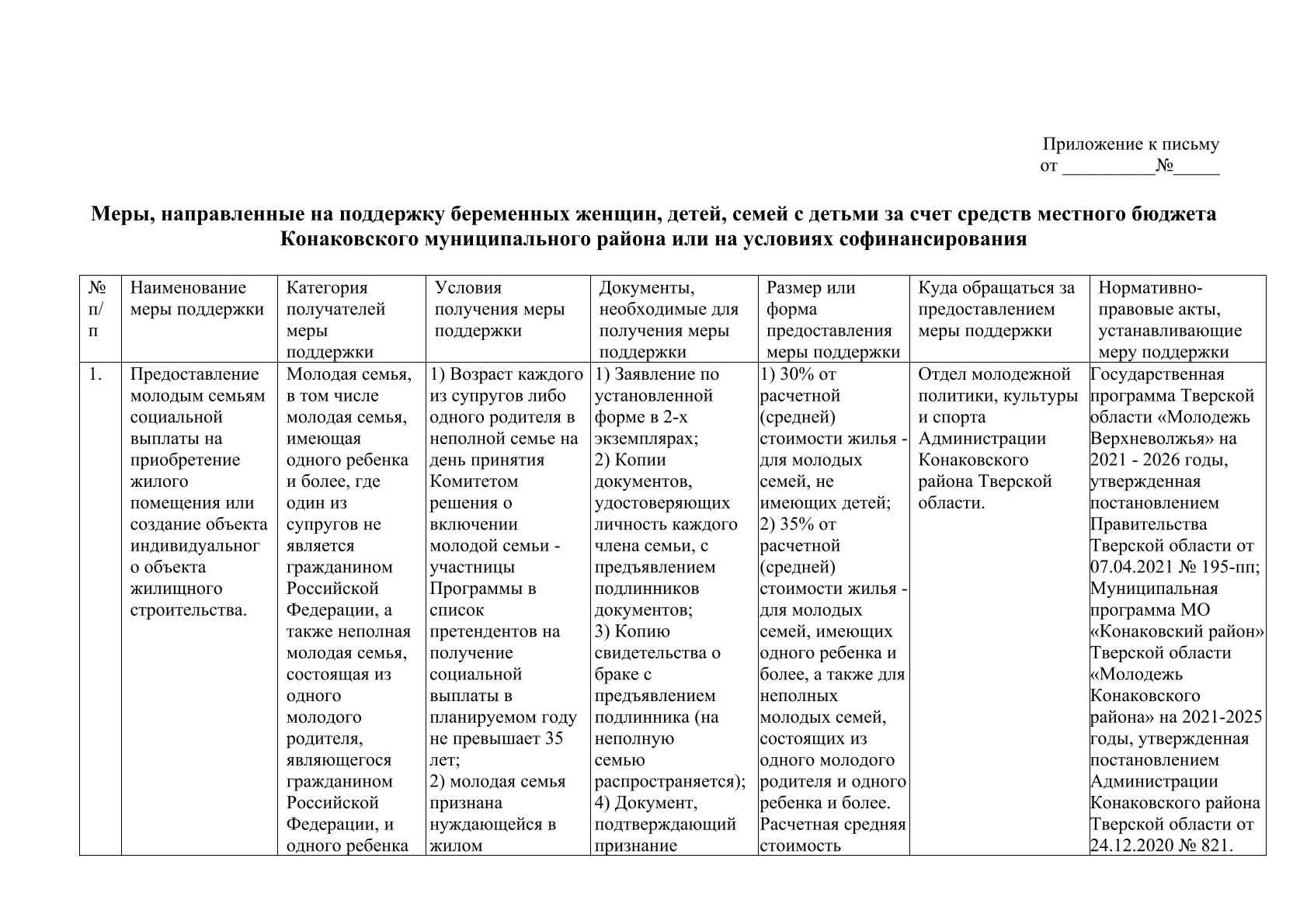 Меры, направленные на поддержку беременных женщин, детей, семей с детьми за счет средств местного бюджета Конаковского муниципального района или на условиях софинансирования