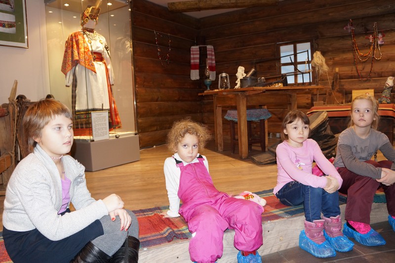 В музее детям рассказали об истории новогодних праздников, когда в России появилась елка, когда на нее стали вешать первые игрушки (оказывается, в неурожайный год, когда не осталось яблок и плодов, и пришлось делать искусственные игрушки). Дети узнали, как жили их ровесники сто и двести лет назад, для этого им показали реконструкцию настоящей крестьянской избы XIX века.