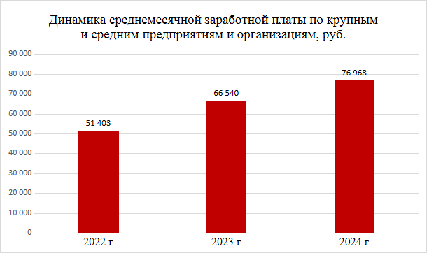 Среднемесячная заработная плата по крупным и средним предприятиям и организациям Конаковского округа за 2024 год составила 76 968 руб. или 124,1% к аналогичному периоду прошлого года.
