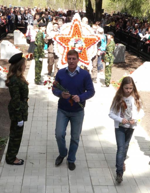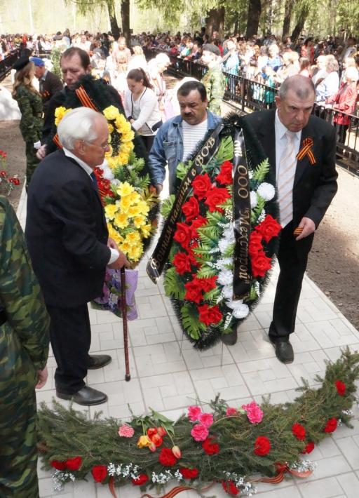 Митинг завершился возложением цветов к братской могиле. В течение нескольких минут нескончаемым потоком шли жители Новозавидовского — молодые, старые, с семьями и детьми, а кипа цветов у гранитных плит росла на глазах. Принесли огромный венок в виде красной звезды, изготовленный на одном из местных предприятий. После митинга ветеранов поселка пригласили на праздничный обед, средства на проведение которого выделили местные предприниматели. В эти дни ни один из ветеранов, проживающих в поселке, не остался без внимания. И власти, и ветеранская организация, и учащиеся обеих школ поселка, и простые люди старались высказать благодарность за ратный и трудовой подвиг — и тем, кто живет среди нам, и тем, кто остается в нашей памяти. С Днем Победы!