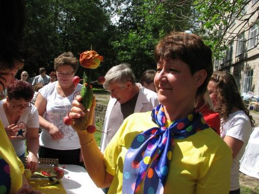 На первом этапе конкурса команды озвучили свои девизы. Девиз команды победителей звучал так: «Лечить всегда, лечить везде, лечить на суше и в воде!». Члены жюри оценили приветствие, внешний вид и эмблемы команд. На втором этапе были проведены несколько состязаний. Первое испытание заключалось в том, кто быстрее донесет носилки с пациентом по тропинке с препятствиями. В этом задании отличилась команда «Айболит» в лице заведующей поликлиникой И.Ю.Мигаль. Во втором испытании нужно было быстро и качественно наложить повязку «Чепец». Здесь бесспорным лидером оказался медицинский брат отделения анестезиологии и реанимации Р.В.Басукинский. Третье испытание «Медицинский дартс» оказалось более сложным. Шприцем с иглой необходимо было попасть в верхнюю правую часть поля для метания дротиков с расстояния одного метра, подразумевая внутримышечную инъекцию в правую ягодицу. С этим заданием справилась лучше всех команда КИО в лице рентгенолаборанта И.А.Бойковой. Четвертое испытание «Конкурс капитанов» сделало задумчивыми лица глав команд, которым пришлось вспомнить учебники из медакадемии. Зато в творческом испытании все члены команд объединились и из предложенных овощей и фруктов смастерили поделки на медицинскую тематику.