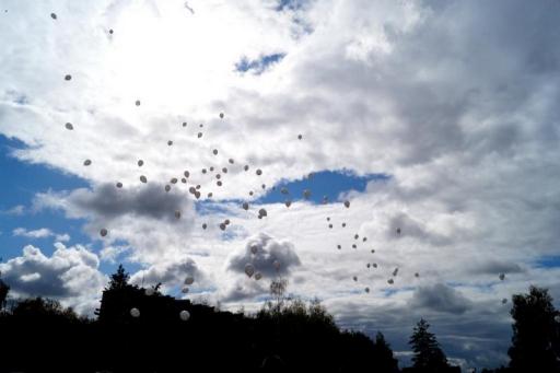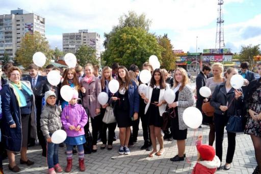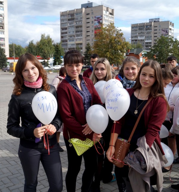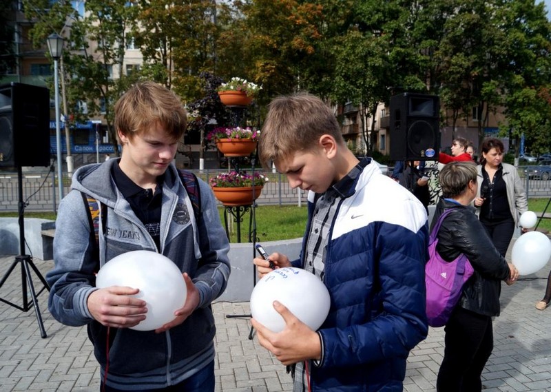 После рассказа ведущих и минуты молчания участники акции отпустили в небо белые шарики, наш символ мира и добра, предварительно написав лозунги за мир и против фашизма.