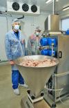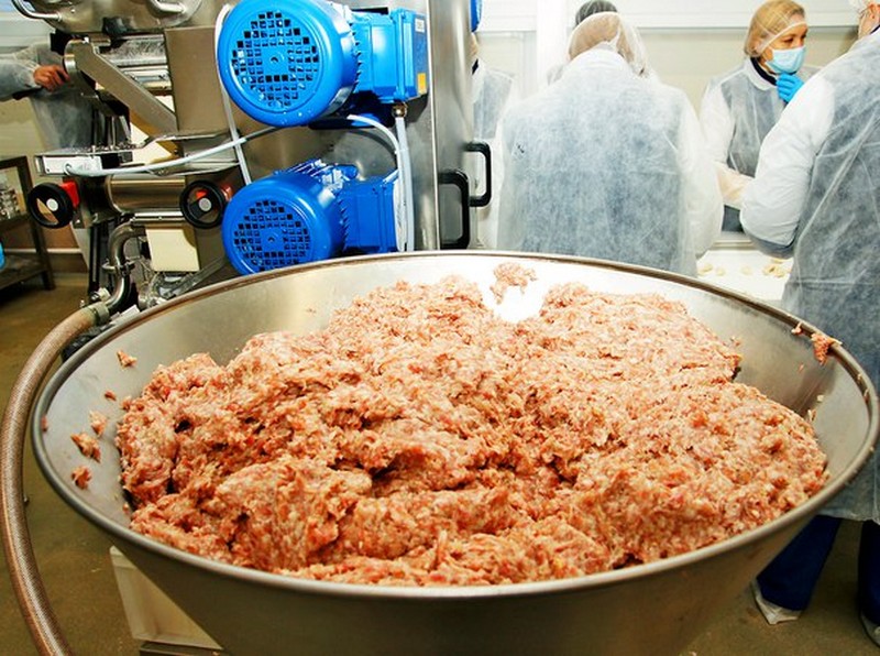 Пельмени делаются так: на линию подается свиной фарш с добавлением специй в соответствии с разработанной рецептурой. Далее начинка и тесто поступают в формовочную машину. Затем продукция попадает на конвейерную линию для ручной лепки, потом отправляется в скороморозильный агрегат (фризер). Внутри фризера используется технология шоковой заморозки. Температура воздуха в камере доходит до 30 градусов мороза! Замороженные пельмени и вареники оказываются на линии фасовки, где упаковываются в пакеты по 450 и 900 грамм. Производительность линии - 2500 кг готовой продукции за 12-часовую смену. Старый цех делал не более тонны пельменей и вареников за день, мощность нового пельменного цеха - до 5 тонн продукции в сутки. Таким образом, объемы производства полуфабрикатов выросли в пять раз.