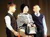 Пожалуй, самыми творчески разнообразными показали себя на фестивале конаковские гимназисты. Гимназия №5 представила сразу два номера: сцену из грибоедовского «Горе от ума» и великолепную постановку «Два клена» Евгения Шварца по мотивам русских народных сказок, где Василиса приходит к избушке на курьих ножках, выполняет сложные задания, которые ей придумывает Баба-Яга, и в конце концов побеждает злую колдунью и возвращает своих потерянных детей. Следует отметить необычное сценическое оформление этой сказки – авторы постарались проявить выдумку и вкус, придумали необычные костюмы, и это отметили и публика, и жюри. Исполнительнице роли Бабы-Яги Арине Прокопьевой достался приз фестиваля за лучшую женскую роль в старшей группе, а маленький артист Андрей Сафонов, сыгравший Егорушку, стал лауреатом фестиваля в номинации «лучшая мужская роль». Управление образования отметило и работу художественного руководителя школьного театра Галины Рымановой – она получила грамоту за многолетний творческий труд.