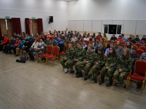 После торжественного митинга школьники и бойцы поискового центра отправились в Досуговый центр, где им была представлена презентация о работе военно-поискового центра «Звезда» и отчет о работе в 2015 году.