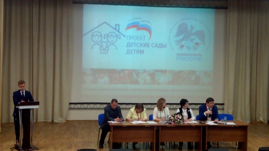 31 мая 2017 года в г.Москва с целью открытого обсуждения проблем в сфере дошкольного образования, укрепления профессионального взаимодействия и обмена опытом в рамках федерального проекта «Детские сады - детям» прошел Третий Всероссийский форум – конференция Общероссийской общественной организации «Воспитатели России» на тему: «Современный детский сад: здесь растет великое будущее России».