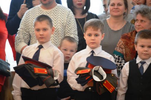 Было видно, как волновались будущие кадеты, каким ответственным для них стал сам момент посвящения в казачье воинство. У всех собравшихся создалось впечатление, что каждый из ребят в этот миг повзрослел, стал серьезнее, стал настоящим кадетом. Но это только первый шаг. С этого дня им каждую минуту придется подтверждать, что они достойны носить звание кадета. Пришли разделить радость этого момента родители и родственники кадетов, с гордостью смотрели они на своих детей. Всего посвящение в кадеты получили девять воспитанников. Казачья форма и погоны с литерами «КК» были вручены Георгию Корнейчуку, Богдану Максакову, Тимуру Петрову, Дмитрию Дмитриеву, Дмитрию Эрдману, Андрею Эрдману, Илье Бондареву, Илье Живову, Эрнесту Присягину.