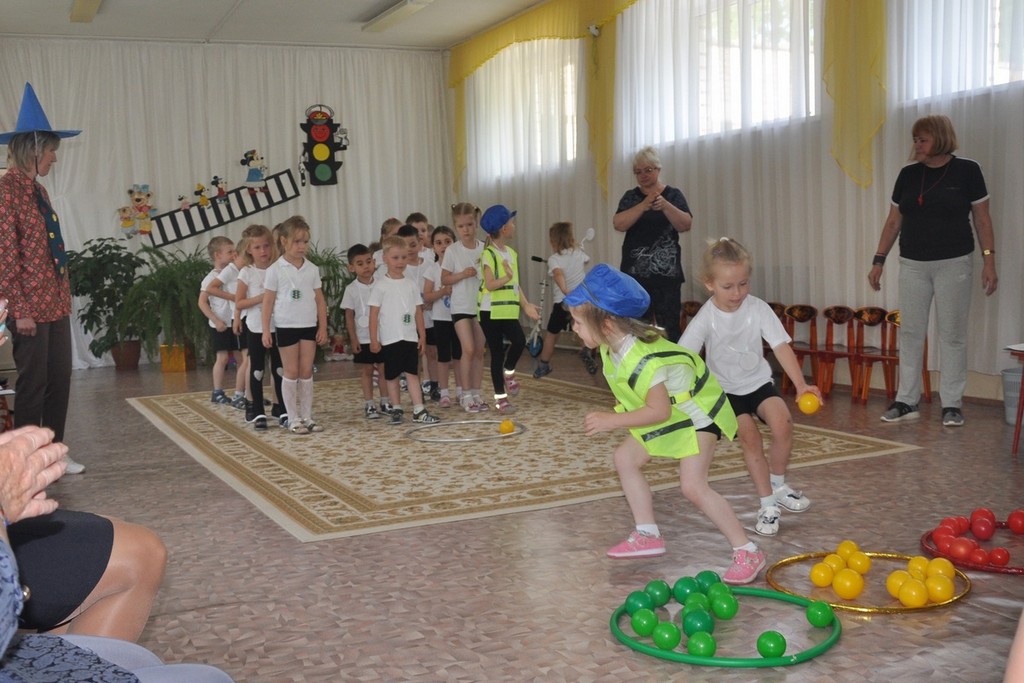 В физкультурном досуге по ПДД, команды старшей группы «Пешеходы» и «Светофор» соревновались между собой в знаниях дорожных знаков, правилах для велосипедистов и помогали Незнайке выучить их, а средняя группа активно поддерживала участников. Конкурсы с жезлом, светофором, светоотражателями под музыкальное сопровождение понравились ребятам. Инспектор рассказала ребятам о службе ГИБДД и повторила самые важные правила безопасности для пешеходов и пассажиров.