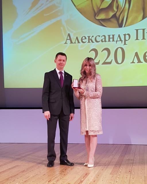 В воскресенье, 2 июня 2019 года в рамках праздничных мероприятий, посвященных 220-летнему юбилею А.С. Пушкина, "Пушкинской медалью" была награждена номинант "Пушкинской премии 2019 года", участница сборника "Антологии русской поэзии 2018", заместитель главного врача по эпидемиологической работе ГБУЗ "ГКБ №7" Юлиана Александровна Малышева ("Пушкинская медаль" учреждена в год празднования 220-летнего юбилея со дня рождения Александра Сергеевича Пушкина и вручается Решением Президиума Российского союза писателей №20190415-1 от 15.04.2019 г.).