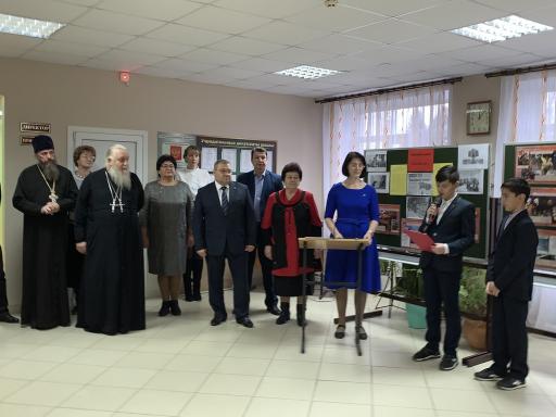 К присутствующим обратилась с приветственной речью директор школы Нина Борисова. Нина Юрьевна рассказала о создании новой экспозиции музея, о том как собирались экспонаты, кто помогал в возрождении музея.